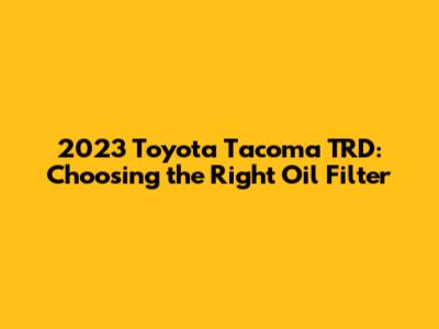 Choosing the right oil filter for your 2023 Toyota Tacoma TRD is an important part of keeping your truck running smoothly and reliably. By doing your research and choosing a high-quality filter, you can protect your engine from wear and damage and ensure that it lasts for many years to come. So, take the time to choose the right filter and enjoy the peace of mind that comes with knowing you're taking good care of your Tacoma!