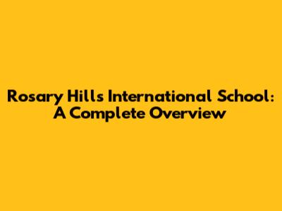 Rosary Hills International School: A Complete Overview