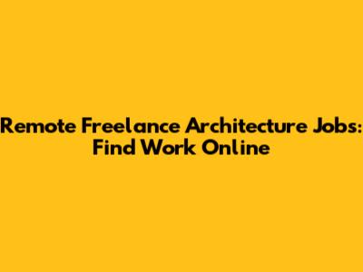 Remote Freelance Architecture Jobs: Find Work Online